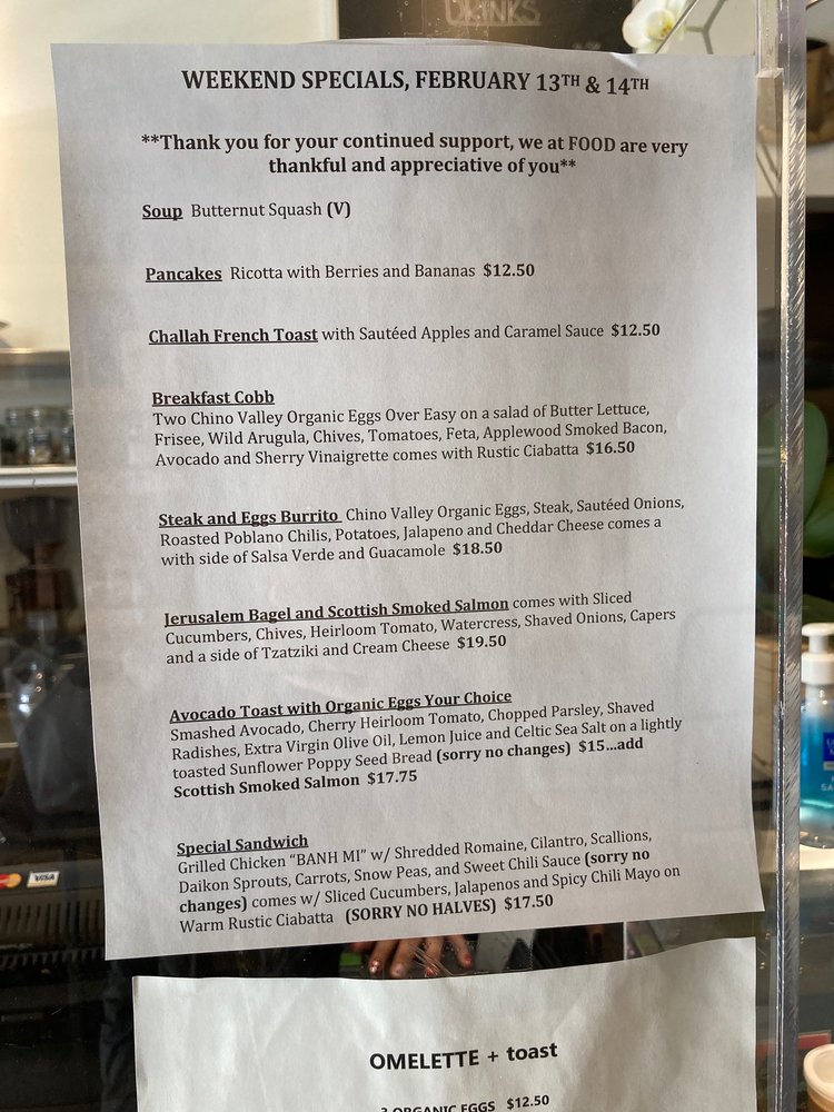 Food is a vibrant restaurant in Los Angeles, offering an array of breakfast and brunch options, with a focus on sandwiches. Their menu includes a variety of salads like the Caesar Salad and Thai Grilled Steak Salad, alongside morning options such as Housemade Granola and Tofu Scramble. With vegan and vegetarian choices available, Food caters to a diverse range of dietary preferences. The establishment's numerous amenities, from outdoor seating to gender-neutral restrooms, ensure a comfortable dining experience for all patrons. Customers rave about the quality of the food, friendly staff, and welcoming atmosphere. Whether you're stopping by for a quick bite or a leisurely meal, Food promises a memorable culinary experience in a cozy, neighborhood setting.